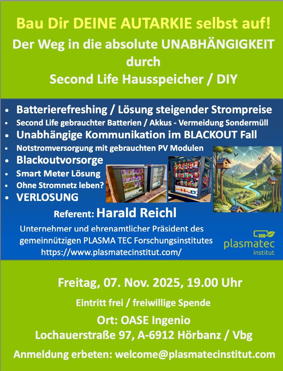 Der Kostengünstige Weg in die Autarkie durch Hausspeicher Themen wie: Batterie-Refreshing das 2. Leben gebrauchter Batterien und gebrauchter Photovoltaik-Module alternative Technologien Notstrom-Vorsorge und Blackout-Vorsorge werden hier durch den Experten und […]